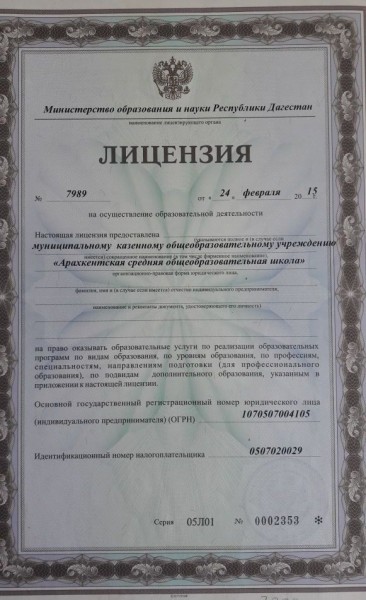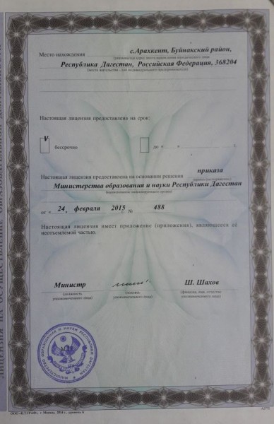 Образовательная деятельность осуществляется по адресу: РД,Буйнакский район, с.Арыхкент, ул.Али Ашикова 7