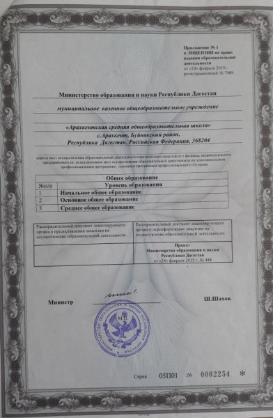 Адрес местонахождения образовательной организации* 368204, Буйнакский район, с.Арахкент ул. Али Ашикова 7